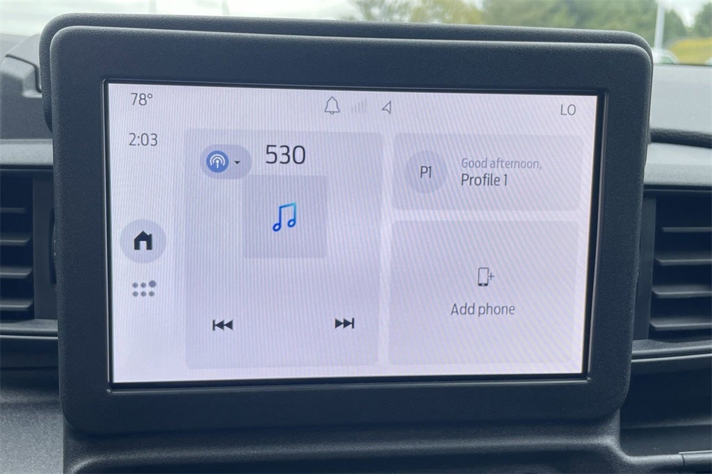 • Radio: AM/FM/MP3 Capable -inc: 100 watt siren/speaker prep kit, clock, 4 speakers, 1 USB port and 8" color LCD screen center-stack smart display, supports Android Auto and Apple CarPlay and fleet telematics modem Allows data to be provided to support Ford Pro telematics and data services via optional subscription, including but not limited to vehicle location, speed, idle time, fuel, vehicle diagnostics and maintenance alerts. Device enables optional telematics services through Ford or authorized providers via paid subscription. Subscribe at https://fordpro.com/en-us/telematics/ or call 1-833-811-FORD (3673).