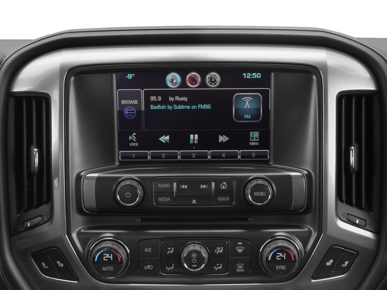 - Audio system, Chevrolet MyLink Radio with 8" diagonal color touch-screen, AM/FM stereo with seek-and-scan and digital clock, includes Bluetooth streaming audio for music and select phones; USB ports; auxiliary jack; voice-activated technology for radio and phone; and Shop with the ability to browse, select and install apps to your vehicle. Apps include Pandora, iHeartRadio, The Weather Channel and more. (Upgradeable to (IO6) Chevrolet MyLink 8" Diagonal Color Touch audio system with Navigation.)