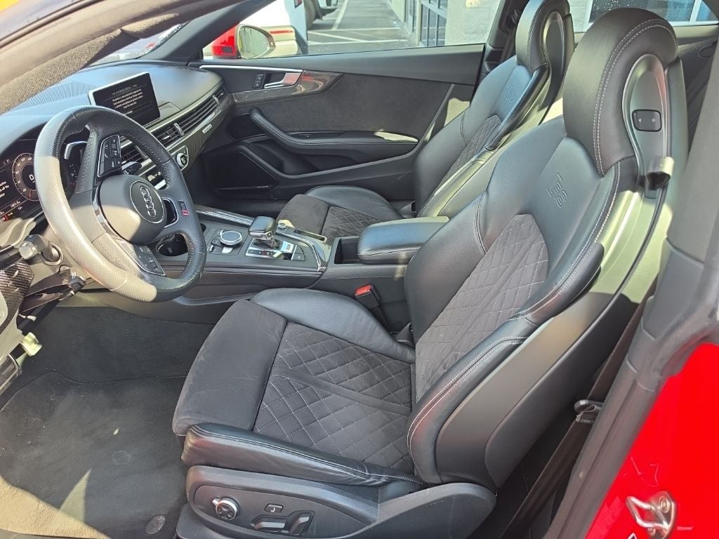 10 Speakers, 174 mph Top Speed Limiter, 4-Wheel Disc Brakes, ABS brakes, Air Conditioning, Alloy wheels, AM/FM radio: SiriusXM, Audi MMI Navigation Plus w/MMI Touch, Audi Virtual Cockpit, Auto-dimming door mirrors, Auto-dimming Rear-View mirror, Automatic temperature control, Bang & Olufsen Sound System w/3D Sound, Black Optic Package, Body-Colored Exterior Mirror Housings, Brake assist, Bumpers: body-color, Carbon Engine Cover, Ceramic Front Brakes, Compass, Delay-off headlights, Delete Front License Plate Holder, Direct Tire Pressure Monitoring System, Driver door bin, Driver vanity mirror, Dual front impact airbags, Dual front side impact airbags, Dynamic Package, Dynamic Plus Package, Dynamic Steering, Electronic Stability Control, Emergency communication system: Audi connect CARE, Exterior Parking Camera Rear, Four wheel independent suspension, Front & Rear Red Brake Calipers, Front anti-roll bar, Front Bucket Seats, Front Center Armrest, Front dual zone A/C, Front fog lights, Front reading lights, Garage door transmitter: HomeLink, Headlight cleaning, Heated door mirrors, Heated front seats, Heated S Sport Front Seats, High Gloss Black Exterior Kit w/quattro Script, Illuminated entry, Knee airbag, Leather Shift Knob, Leather steering wheel, Leather/Alcantara Seating Surfaces, Low tire pressure warning, Memory seat, Navigation Package, Occupant sensing airbag, Outside temperature display, Overhead airbag, Overhead console, Panic alarm, Passenger door bin, Passenger vanity mirror, Power door mirrors, Power driver seat, Power moonroof, Power passenger seat, Power steering, Power windows, Radio data system, Radio: Audi Sound System, Rain sensing wipers, Rear air conditioning, Rear anti-roll bar, Rear reading lights, Rear seat center armrest, Rear window defroster, Remote keyless entry, RS Sport Exhaust System w/Black Tips, RS Sport Suspension Plus w/Dynamic Ride Control, Security system, Speed control, Speed-sensing steering, Speed-Sensitive Wipers, Split folding rear seat, Spoiler, Sport steering wheel, Steering wheel mounted audio controls, Tachometer, Telescoping steering wheel, Tilt steering wheel, Traction control, Trip computer, Turn signal indicator mirrors, Variably intermittent wipers, Wheels: 19 10-Spoke Forged Star Design, Wheels: 20 5-Arm-Trapezoid Forged Design.