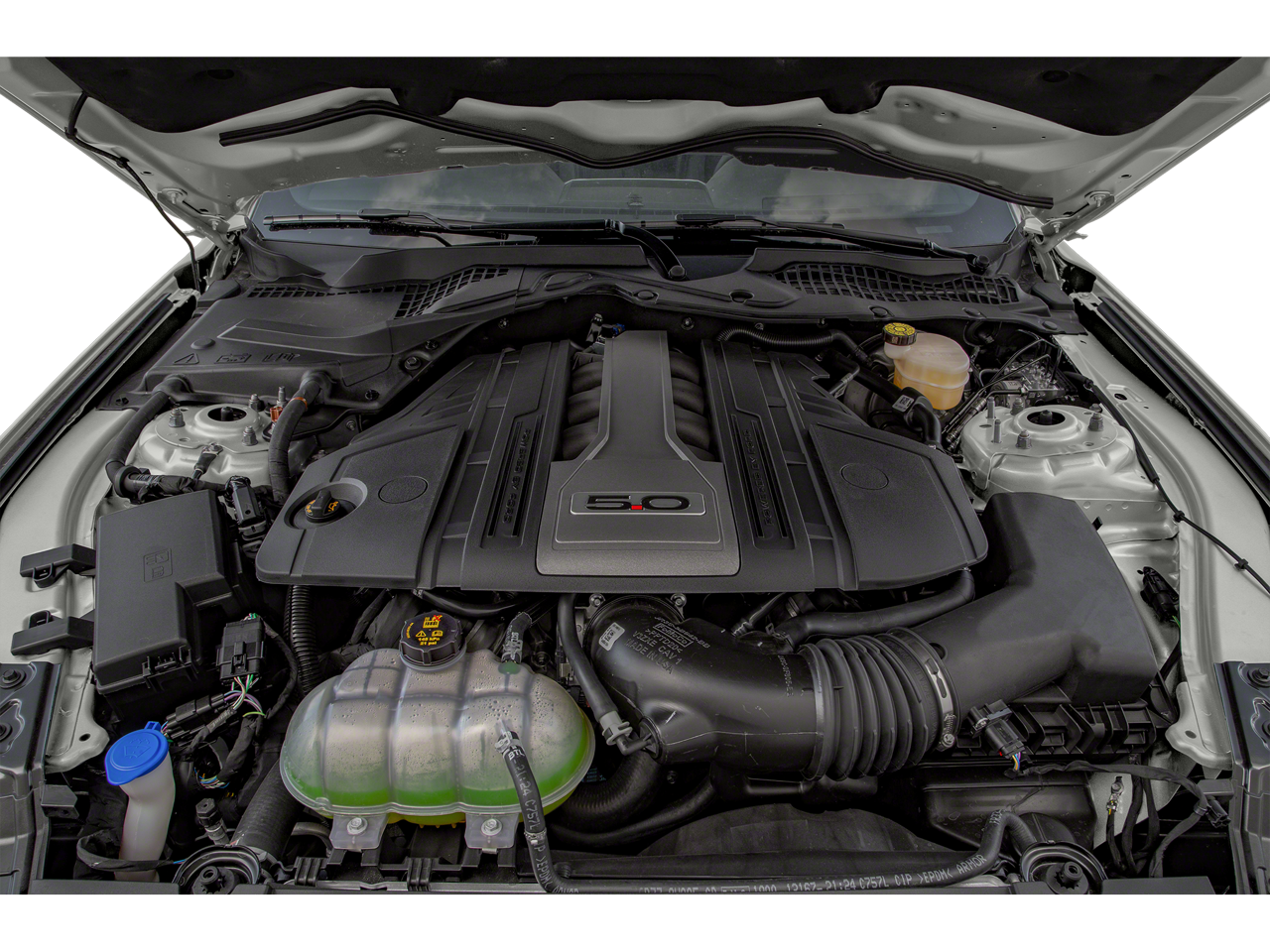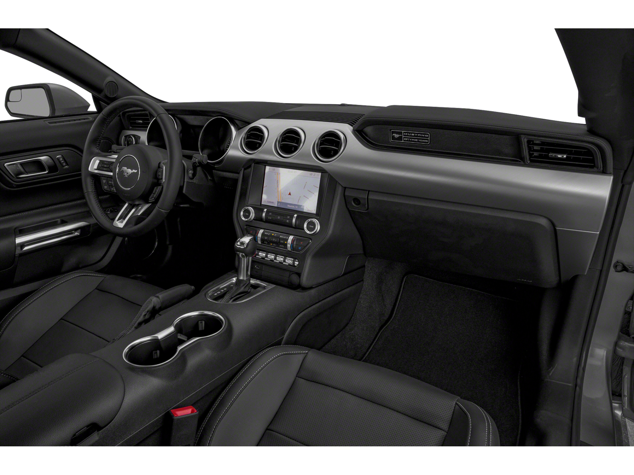 3.15 Limited Slip Rear Axle Ratio, 4-Wheel Disc Brakes, 6 Speakers, ABS brakes, Adaptive Cruise Control, Air Conditioning, Alloy wheels, AM/FM radio, AM/FM Stereo, AM/FM Stereo w/MP3 Player, Auto-dimming Rear-View mirror, Automatic High Beam, Brake assist, Bumpers: body-color, Cloth Bucket Seats, Compass, Delay-off headlights, Driver door bin, Driver vanity mirror, Dual front impact airbags, Dual front side impact airbags, Dual-Zone Automatic Temperature Control, Electronic Stability Control, Emergency communication system: 911 Assist, Engine Spun Aluminum Instrument Panel, Equipment Group 301A, Exterior Parking Camera Rear, Ford Safe & Smart Package, Four wheel independent suspension, Front anti-roll bar, Front Bucket Seats, Front Center Armrest, Front fog lights, Front reading lights, Fully automatic headlights, Gauge Pack (Oil Pressure & Vacuum), GT Performance Package, HD Front Springs, Illuminated entry, Knee airbag, Lane-Keeping Alert, Larger Brake Rotors, Larger Radiator, Low tire pressure warning, Occupant sensing airbag, Outside temperature display, Overhead airbag, Overhead console, Panic alarm, Passenger door bin, Passenger vanity mirror, Power door mirrors, Power driver seat, Power passenger seat, Power steering, Power windows, Pre-Collision Assist w/Pedestrian Detection, Radio data system, Rain-Sensing Windshield Wipers, Rear anti-roll bar, Rear window defroster, Remote keyless entry, Security system, SiriusXM Radio, Speed control, Speed-sensing steering, Speed-Sensitive Wipers, Split folding rear seat, Spoiler, Steering wheel mounted audio controls, SYNC Communications & Entertainment System, Tachometer, Telescoping steering wheel, Tilt steering wheel, Traction control, Trip computer, Unique Stability Control, Variably intermittent wipers, Voltmeter, Wheels: 18 x 8 Machined-Face Aluminum, Wheels: 19 x 9 Fr & 19 x 9.5 Rr Ebony Black.