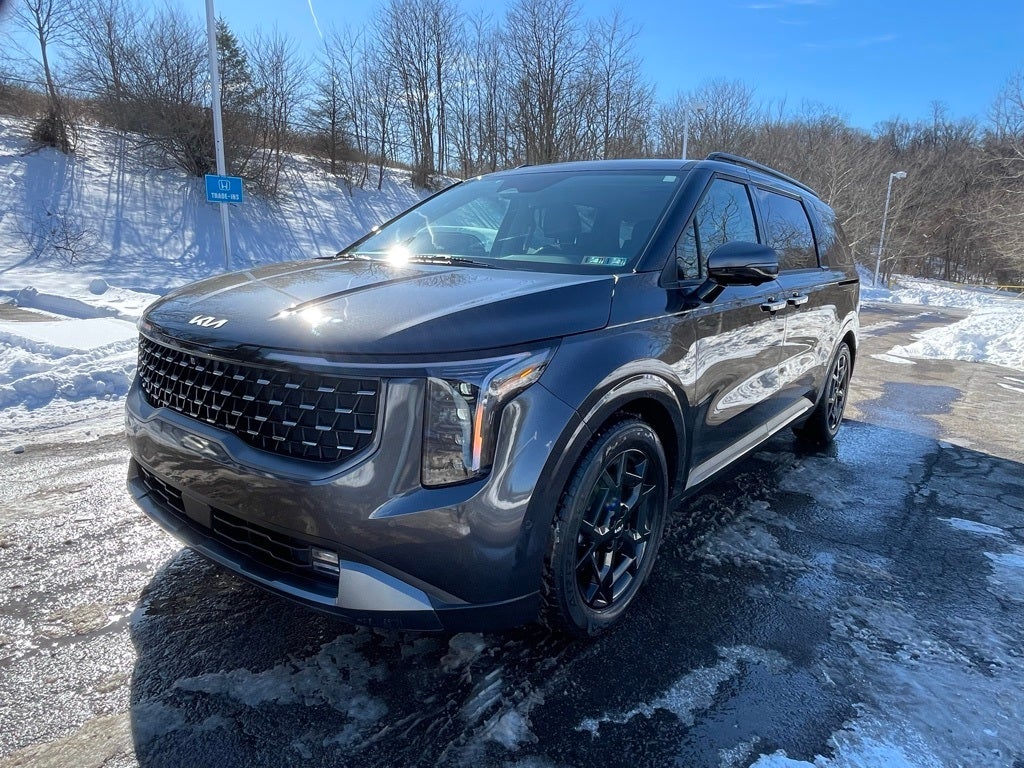 Kia Certified Pre-Owned Certified, 12 Speakers, 2nd Row Laminated Windows, 3.51 Axle Ratio, 3rd row seats: split-bench, 4-Wheel Disc Brakes, ABS brakes, Air Conditioning, Alloy wheels, AM/FM radio: SiriusXM, Ambient Lighting, Apple CarPlay & Android Auto, Auto High-beam Headlights, Auto-dimming Rear-View mirror, Automatic temperature control, Brake assist, Bumpers: body-color, Compass, Delay-off headlights, Driver door bin, Driver vanity mirror, Dual front impact airbags, Dual front side impact airbags, Dual Screen Rear Seat Entertainment System, Electronic Stability Control, Emergency communication system, Exterior Parking Camera Rear, Four wheel independent suspension, Front anti-roll bar, Front Bucket Seats, Front Center Armrest, Front dual zone A/C, Front fog lights, Front reading lights, Fully automatic headlights, Garage door transmitter: HomeLink, Heads-Up Display, Heated & Ventilated Front Bucket Seats, Heated door mirrors, Heated front seats, Heated steering wheel, Heated/Ventilated 2nd Row Power VIP Lounge Seats, High Glossy Interior Trim, Illuminated entry, Knee airbag, Leather Shift Knob, Leather steering wheel, Low tire pressure warning, Luxury Carpeted Floor Mats, Memory seat, Navigation system: AVN 5.0 Navigation System, Occupant sensing airbag, Outside temperature display, Overhead airbag, Overhead console, Panic alarm, Passenger door bin, Passenger vanity mirror, Power 2nd-Row Moonroof, Power door mirrors, Power driver seat, Power Liftgate, Power moonroof, Power passenger seat, Power steering, Power windows, Pure Leather Seat Trim, Radio: AM/FM/HD Audio System, Rain sensing wipers, Rear air conditioning, Rear anti-roll bar, Rear reading lights, Rear Seat Entertainment Package, Rear window defroster, Rear window wiper, Reclining 3rd row seat, Remote keyless entry, Security system, Speed control, Speed-sensing steering, Split folding rear seat, Spoiler, Steering wheel mounted audio controls, SX Prestige Seat Package, Tachometer, Telescoping steering wheel, Tilt steering wheel, Traction control, Trip computer, Turn signal indicator mirrors, Variably intermittent wipers, Ventilated front seats, Wheels: 7.5J x 19 Alloy Dark Edition.
